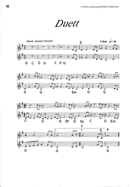 Notenliteratur mit 10 Melodien für 1 + 2 Panflöten und Harmonien. Komponiert von Joachim Domide.